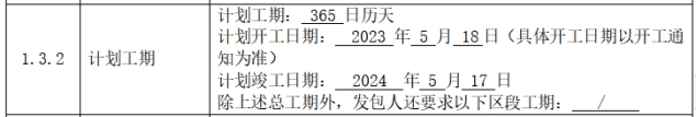 本项目招标文件第二章投标须知前附表1.3.2计划工期内容修改为