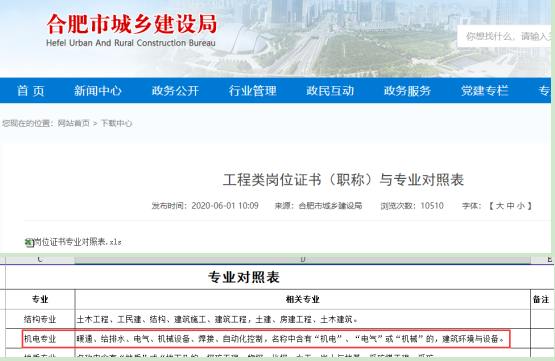 招标文件中项目技术负责人要求技术职称为机电工程相关专业中级及以上,根据合肥市城乡建设局网站发布的《工程类岗位证书(职称)与专业对照表》(见以下截图),提供的中级职称专业名称中含有“电气”,是否符合要求?