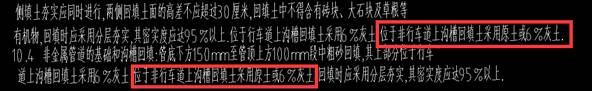 6.请明确本项目非行车道上的沟槽回填按6%灰土还是原土?