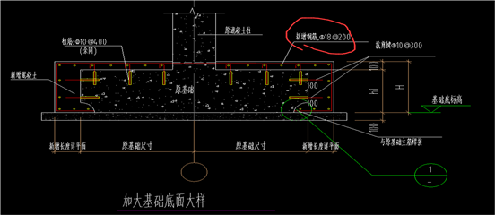 3、基础新增的钢筋是否为:双向,三级18间距200钢筋?