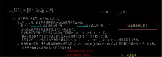 12、梁加固第七条,图中未标注的梁(如2图红色框未标注的梁,余同)是否也按此做法?已加大截面的梁是否也需按第七条做法再加固一遍?