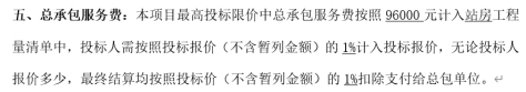答:总承包服务费是建筑安装工程费报价(不含暂列金额)的1%计入投标报价。