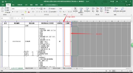 1、导入EXCEL已标价工程量清单时,请保持表格内的宽度不超过一页。超过一页部分会被切割开,并自动附到文档最后,造成内容不连贯(也可以通过打印预览查看是宽度是否超过一页)。如图所示:
