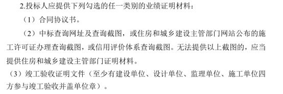 (2)中标查询网址及查询截图,或住房和城乡建设主管部门网站公布的施工许可证办理查询截图,或信用评价体系查询截图。无法提供以上截图的,应当提供住房和城乡建设主管部门证明材料。