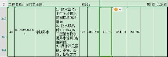 5.1#门卫土建第43项防水材料是否为甲供,如不是则控制价综合单价偏低,请复核。其他楼栋门卫问题一致。