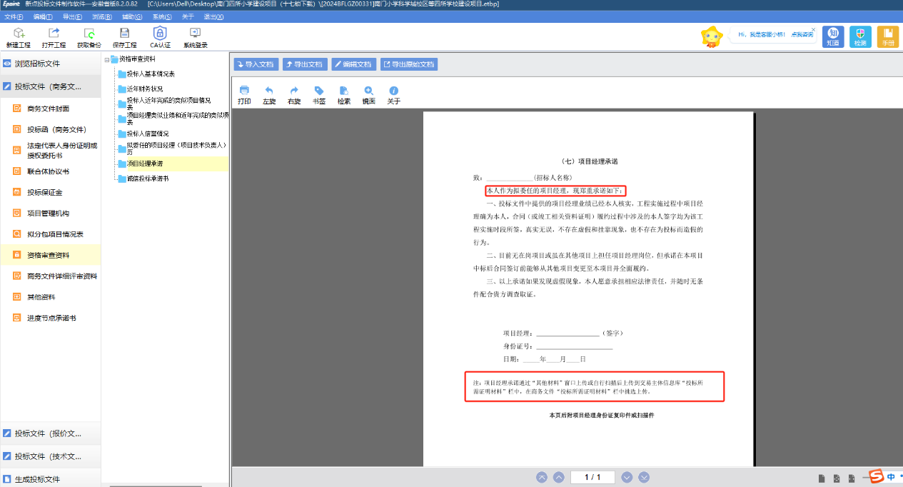1.招标文件中“投标文件格式七、资格审查资料(七)项目经理承诺。”与投标软件中(七)项目经理承诺格式不同,请问以哪个为准?