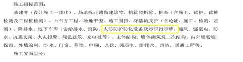 21.根据招标文件“施工招标范围”“施工界面范围划分”第12条约定,人防工程全部计入,经清单与图纸对,战时防化设备(包含但不局限于电动离心风机、过滤吸收器等设备),地库安装工程量清单中未见战时防化设备等内容,是否漏项?