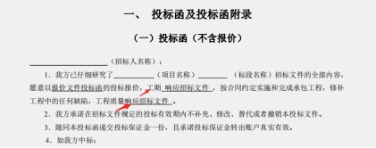 5.详见下图,招标文件P194页投标函中工期、质量格式给定为响应招标文件,是否还需要填写具体内容?