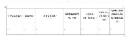 1.投标人在制作偏离表时,不可带“(四)带号设备品牌型号汇总与指标偏离表”标题。即制作的表格中“(四)带号设备品牌型号汇总与指标偏离表”字样不可体现。若各投标人未按照招标要求上传相关内容,则对应评审项作0分处理,由此造成的不良影响均由投标人自行承担。