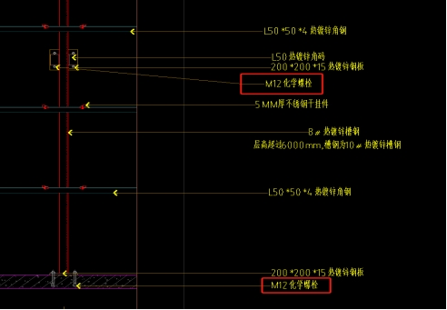 1)学术交流中心GS-01`06基础节点GS-02-01、02、03石材干挂与主体连接使用M12化学锚栓,化学锚栓在受热后性能大大降低,建议使用机械锚栓。