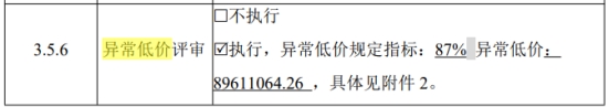 3.招标文件载明:异常低价为招标控制价的87%,最新提供的清单控制价为102059431.44,是否异常低价修改为最新提供的清单控制价*87%,按88791705.35 执行。