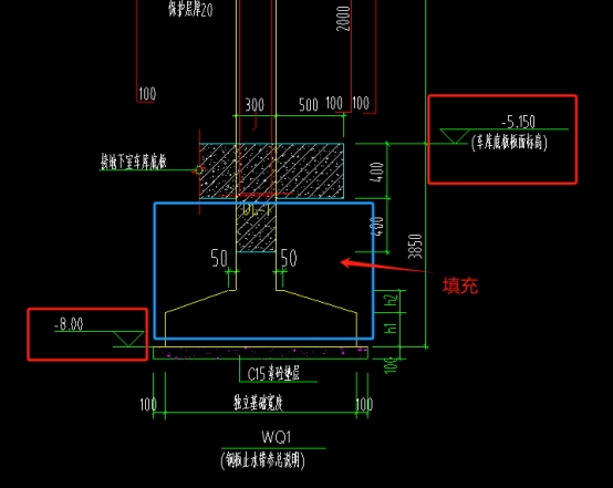 12.结构图07-36中DL-1的底标高是否为-8.0米,独立基础至防水底部间的空隙采用什么材质进行填充?