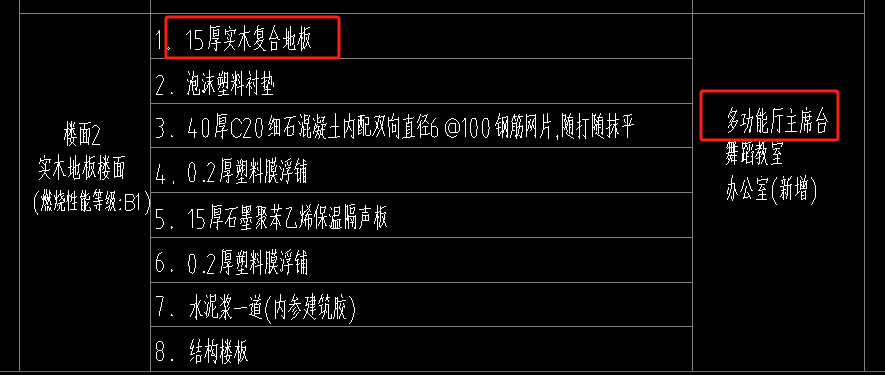 17.建施-05中装饰装修做法表内显示主席台地面为15厚实木复合地板,装饰平面图5/6F-PM-06中描述为18厚实木复合地板,请明确具体厚度。
