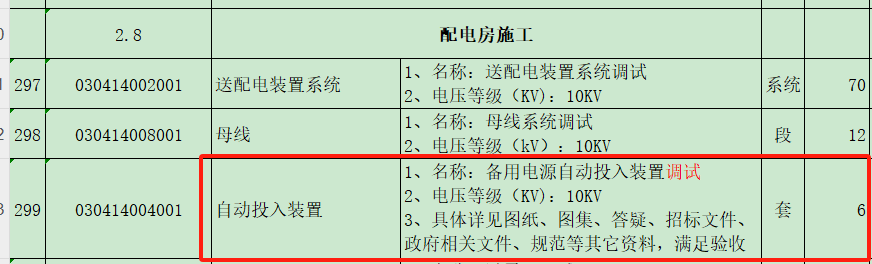 回复:以上备用电源自动投入装置调试为高压联络柜内微机通用保护测控装置调试,投标人综合考虑,标后不予调整。