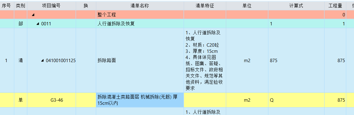回复:(1)清单总价中为15cm: