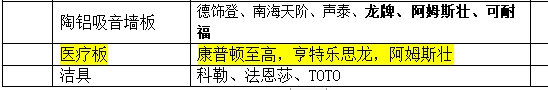 8.如图所示,品牌表中,医疗板品牌为康普顿至高、亨特乐思龙、阿姆斯壮,据了解以上品牌为铝板产品,并无医疗板产品,请贵司明确医疗板材质;