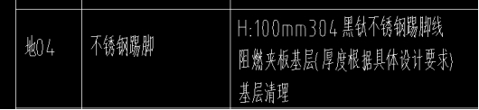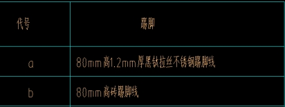 10.如图所示,做法表中不锈钢踢脚为100mm高,平面图图例中为80mm,以哪个为准?