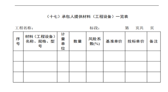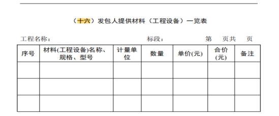 45.请明确招标文件中“(十六)发包人提供材料(工程设备)一览表”、“(十七)承包人提供材料(工程设备)一览表”需要填写的内容。