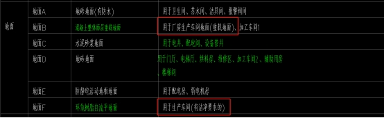 83.建筑总说明图纸中厂房地面A和地面F分别用于厂房重载地面及洁净要求区域,上述两个区域具体位置在厂房建筑图中未明确,请告知具体位置。