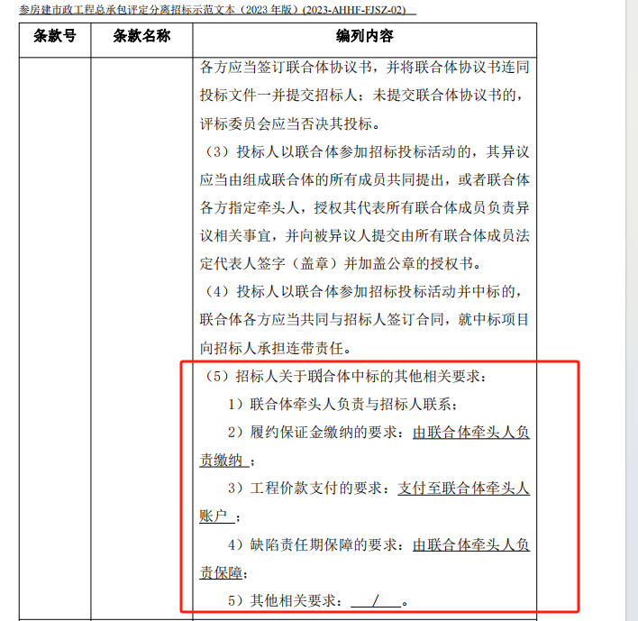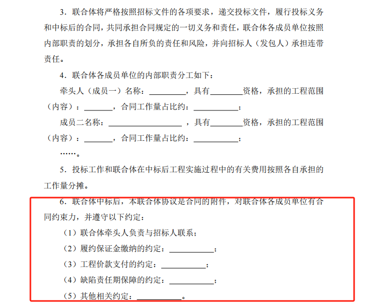 5.关于招标文件174页“联合体协议书”格式中,第6条内容(如下图)