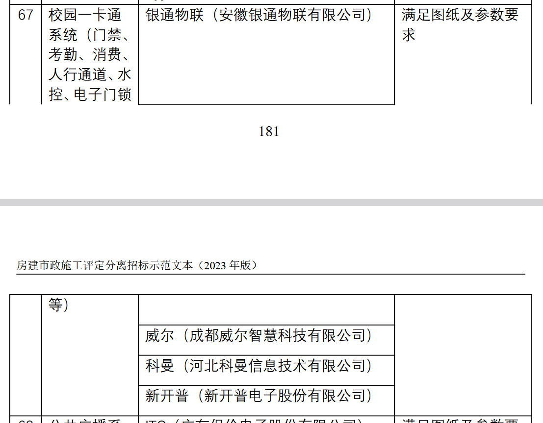 1、根据招标文件显示一卡通系统推荐品牌为: