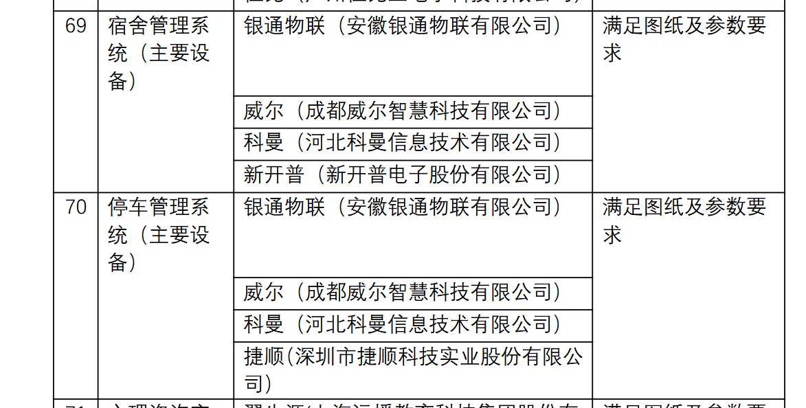 (4)河北科曼和威尔都不生产停车场管理系统。此项品牌设置为银通物联为控制品牌范围所专门设置的推荐品牌,具有唯一性。