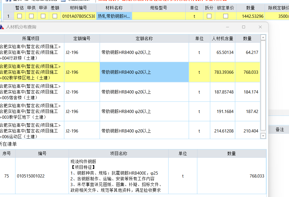 6.可调差材料一览表中第9条热轧带肋钢筋HRB400Eφ25mm GB/T 1499.2 数量为416T,低于清单中的量,详见截图,数量是否有误?