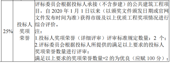4.本项目为施工总承包工程,请问投标人奖项荣誉评审中,建筑装饰装修类工程获市级及以上优质工程奖项是否满足要求?