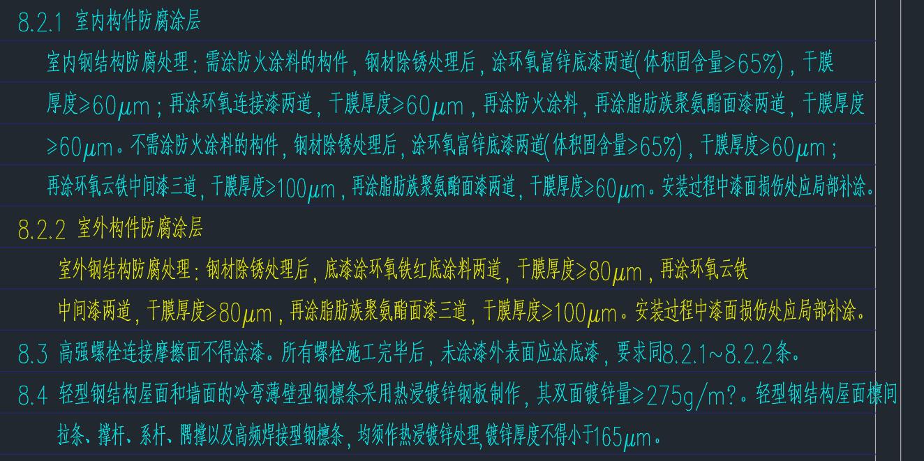 2、招标文件中望塘污水厂结构图纸说明第8.2.1及第8.2.2室内、室外构件防腐涂层厚度超常规标准,超常规标准会影响钢结构单价,是否按招标文件中设计图纸说明防腐要求进行报价?