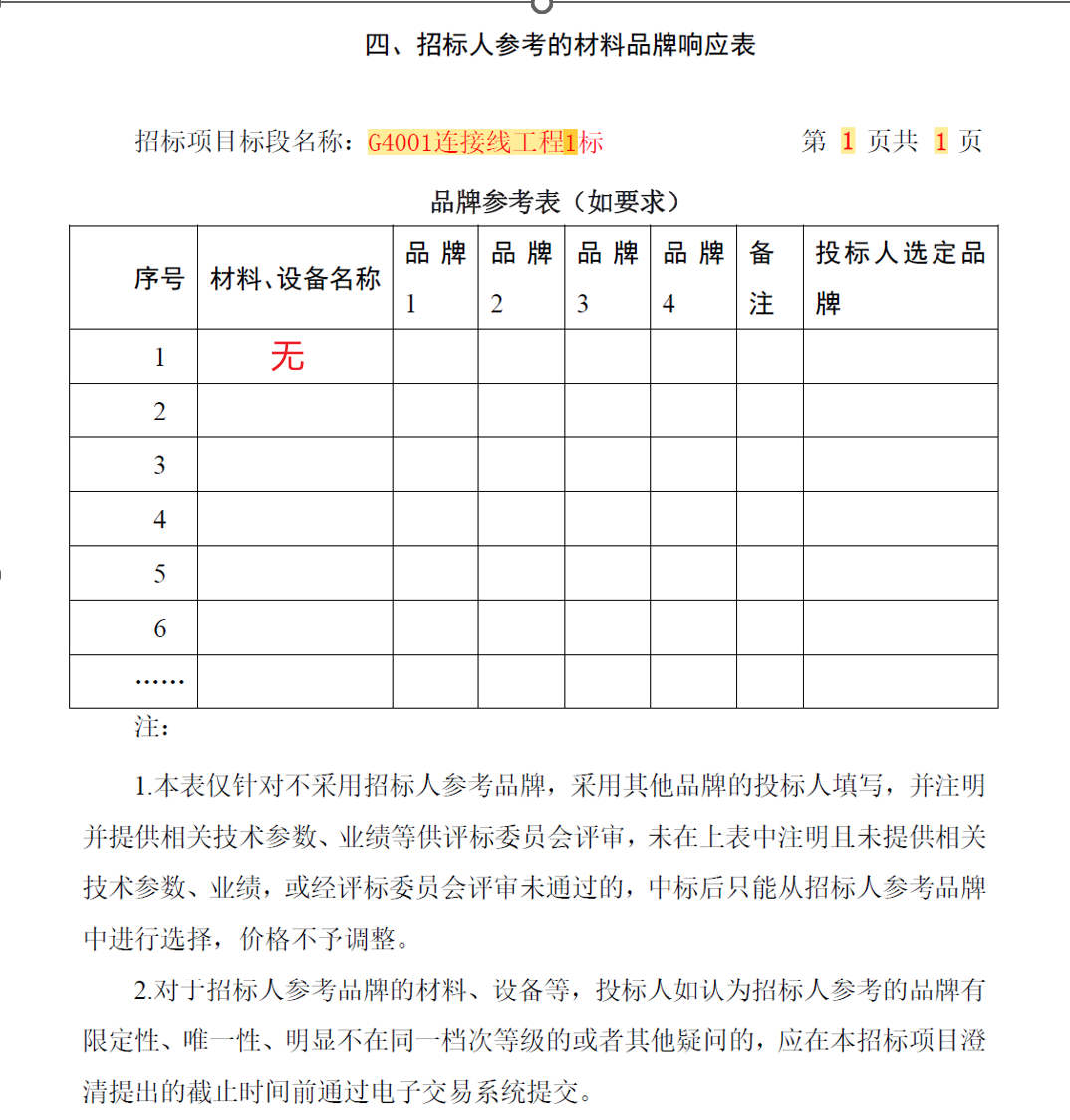 3、招标文件P5页规定“招标项目名称:G4001连接线工程1标”,请问在投标文件中涉及到“ (招标项目名称) 标段”的内容是否可以填写为“G4001连接线工程1标(招标项目名称) / 标段”?