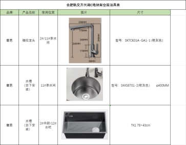 答:经复核,玄关柜背衬石材五金配件为固定石材所用到的固定金属件;主卫台盆(石材台面)五金配件为石材所用到的固定金属件及卫生间不锈钢厕纸架;公卫台盆(石材台面)五金配件为石材所用到的固定金属件及卫生间不锈钢厕纸架。