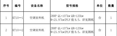9.招标文件第29页:1、货物需求中的空调室外机设备参数一项中28匹的室外机制冷量为107kw,制热量为120kw。根据市场了解各生产厂家的28匹室外机制冷量为80kw,制热量是90kw,且根据室内机的冷量和数量可以判定,此采购项目的主机参数应为制冷量80kw,制热量90kw。建议将主机参数修改为:28HP ,QL=80KW ,QR=90KW,N=10.9KW,IPLV值8.55。