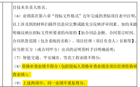 2)本项目在资格要求中设置了3000万企业业绩、2500万项目经理业绩,不仅如此,在评审要求中,在企业业绩、项目经理业绩、技术负责人业绩多处也都设置了业绩评分,业绩所占分值高达18分,超过整个技术分的1/4,对业绩做如此特殊要求,属于过于抬高业绩重要性,该评分办法变相通过业绩决定中标单位,具有明显的不合理性和排他性。评分办法应当是针对投标人综合实力的体现,招标文件不应对业绩设置过多要求,建议删除。