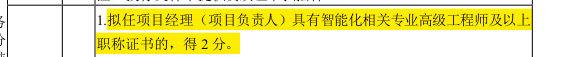 删除“拟任项目经理(项目负责人)具有智能化相关专业高级工程师及以上职称证书的,得2分”的要求。