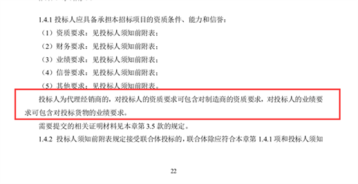 3、招标文件P22中对“投标人为代理经销商的,投标人的资质要求可包含对制造商的资质要求,对投标人的业绩要求可包含对投标货物的业绩要求。”是否指若投标人为代理经销商,制造商的资质均可以作为投标人的资质、资格、认证资格审查条件和商务评分标准?是否指若投标人为代理经销商,制造商的货物的所有业绩无论甲乙双方是否为投标人,均可以作为投标人的业绩资格审查条件和商务评分标准?