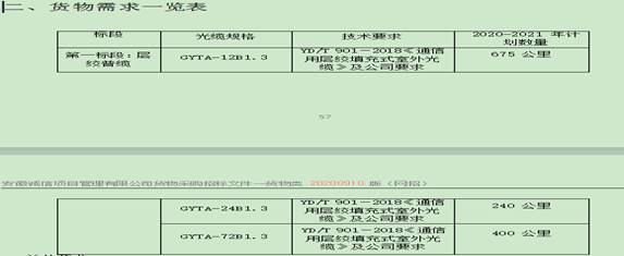 合肥有线2020-2021光缆定点供应商1标段项目招标文件补疑1