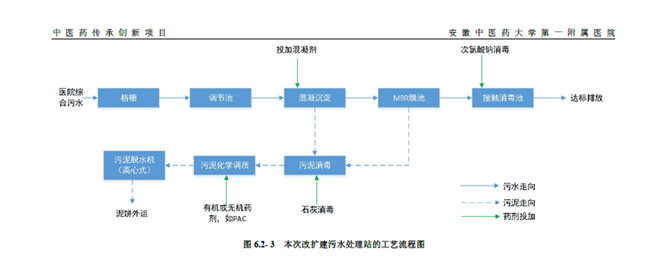 答:本次处理工艺流程应当严格按照安徽中医药大学第一附属医院中医药传承创新大楼环评报告及批复意见进行设计施工。如配置要求与环评报告及批复意见不一致的,以环评报告及批复意见为准(详见合肥市生态环境局网站)。