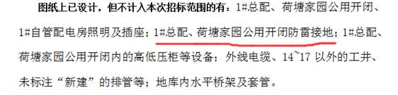 招标范围中说1#总配和荷塘家园公用开闭防雷接地不在本次招标范围内,但清单中1#总配和荷塘家园公用开闭有接地系统,请问以哪个为准?