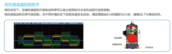 14.多联空调机组应采用双热源油温控制技术,外部电加热带与压缩机绕组独立或同时控制;同时应具有后备加热功能,提高压缩机可靠性;