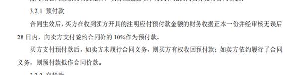 然而招标文件第五十页合同价格与支付中标明合同生效后,买方在收到卖方开具的注明应付预付款金额的财务收据正本一份并经审核无误后28 日内,向卖方支付签约合同价的 10%作为预付款。具体见下图: