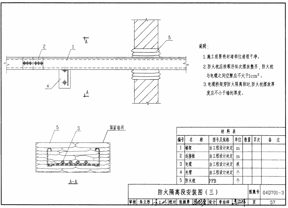 37.根据GB51348-2019《民用建筑电气设计标准》中“26.1.9弱电线路布线系统电缆、电气导管、金属桥架(槽盒)在穿越每层楼板、隔墙及防火卷帘上方的防火分隔时,其孔隙应采用不低于建筑构件耐火极限的不燃材料或防火封堵材料封堵”,而地下车库中又防火金属桥架穿防火卷帘的情况,请补充提供做法大样图。