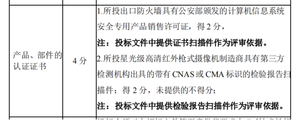 5.对于产品、部件的认证证书内容,都是厂家的参数控标点或不同点,有排斥同类其他品牌的产品,具有唯一性。各个厂家的设计架构和具体功能细节不会一模一样,申请检测时的侧重点也不一样,因此,出具的检测报告文字描述和检测项目不会相同,所以,检测报告的内容无法与招标文件要求文字描述一一对应。招标文件要求并不合理。