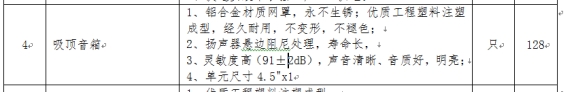 19.吸顶音箱参数中未明确具体的功率,导致投标人无法报价。