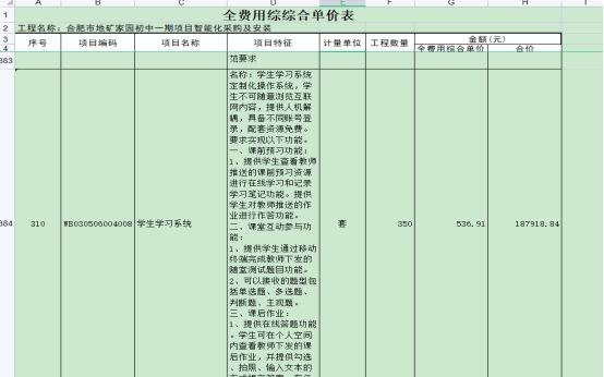 6.合肥市地矿家园初中一期项目智能化采购及安装单位工程量清单第311 项(项目编码:WB030506004009),工程数量由35调整为350,具体如下: