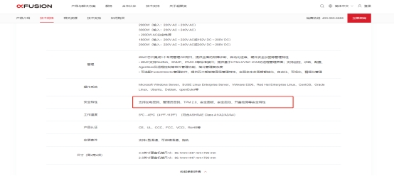 超聚变(原华为)官网服务器参数,支持拓展TPM: