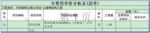 回复:经复核,控制价及清单中有暂列金这一项,具体详见清单万科森林公园公交站-土建钢结构工程中序号第23项。