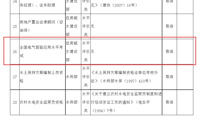 疑问3:招标文件第三章“评标办法”中“商务及技术文件、报价文件详细评审标准”中“拟派人员资格”要求“(1)具有电气智能中级及以上工程师证书的,得2分;”。该证书已被国家取消认定,国务院关于取消和调整一批行政审批项目等事项的决定(国发〔2015〕11号),取消的专业技术人员职业资格许可和认定事项(共计28项,其中准入类4项,水平评价类24项),全国电气智能工程师在取消之列,公告链接:http://www.gov.cn/zhengce/content/2015-03/13/content_9524.htm