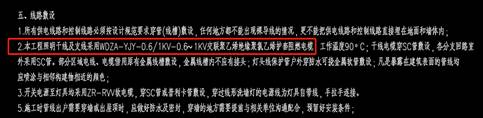 4.设计说明中第五条线路敷设第二款本中工程照明干线及支线采用WDZA-YJY-0.6/1KV-0.6~1KV交联聚乙烯绝缘聚氯乙烯护套阻燃电缆,电缆型号与说明不符,是否应为WDZA-YJY-0.6/1KV-0.6~1KV交联聚乙烯绝缘聚乙烯护套低烟无卤阻燃A级电缆,请明确电缆使用型号。