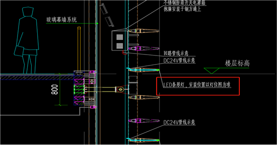 6.节点大样图(三)中,①、灯具名称LED条形灯与清单LED轮廓灯不符,请确认。②、定制铝合金线槽抱箍安装于钢方通上与图示自攻钉安装不符,请确认安装方式。