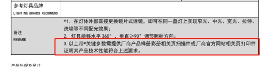 5.招标展陈专业其他灯具技术规格书如下截图备注“3.”